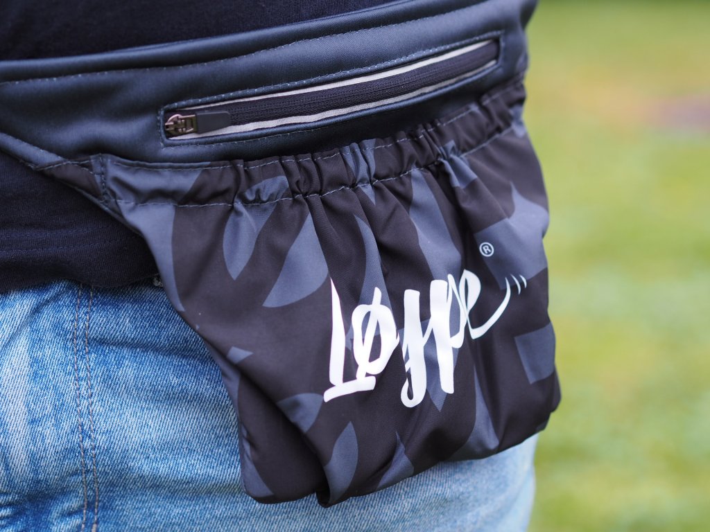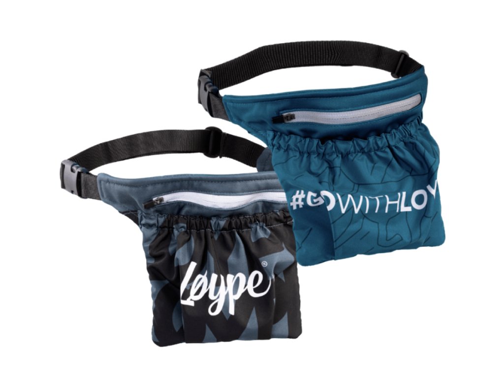 Pamlsková kapsa je v horní části stažená gumičkou, která udrží pamlsky tam, kde mají být. Čistá kapsa je na zip. Pamlskovník je vyrobený ze softshellu, lze ho prát v pračce a má ledvinkovitý tvar, aby skvěle padnul k pasu i přes rameno.