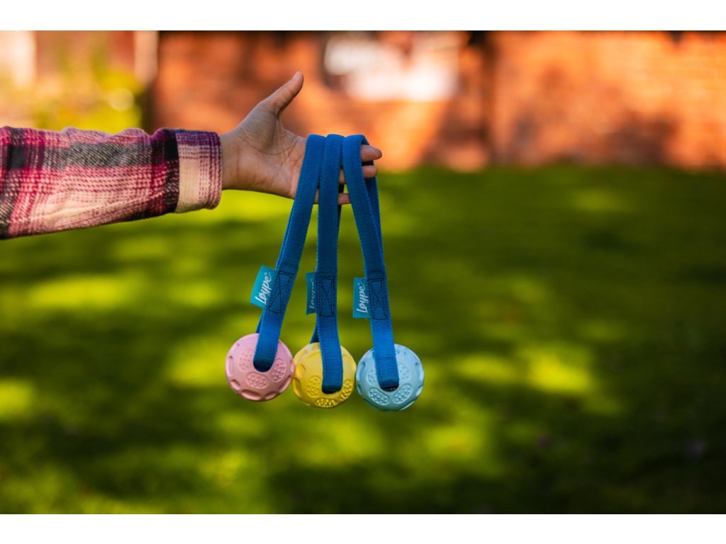 Odolný míček Springster je určený pro přetahování se psem. Díky amortizéru všitému přímo v popruhu vydrží i intenzivní a náročné používání.